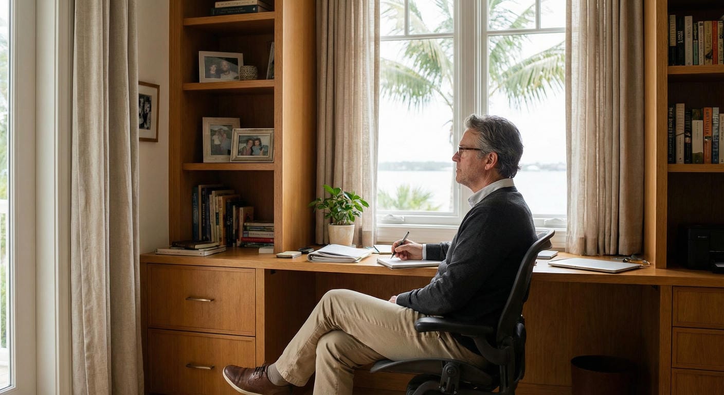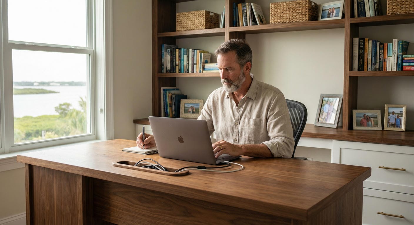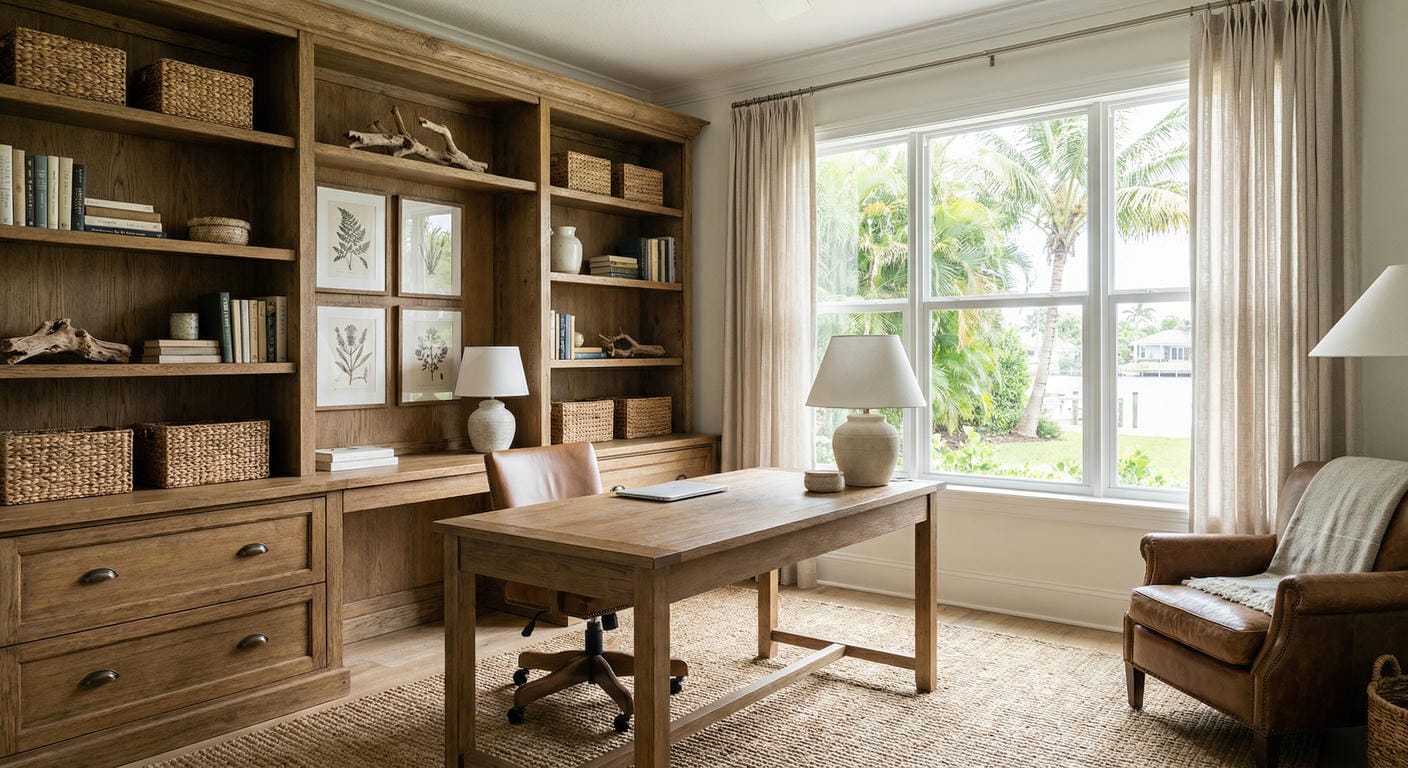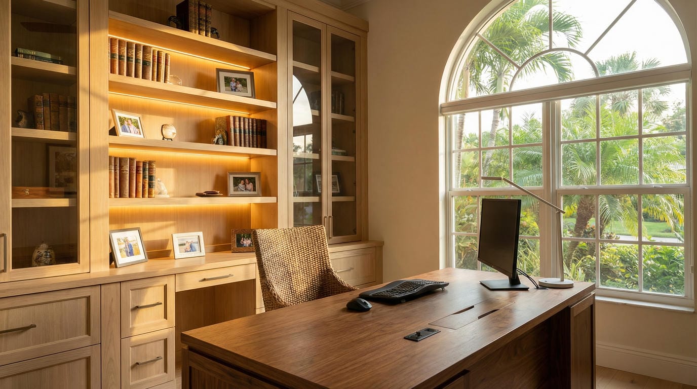 Tired of losing important files because of a cramped space, no storage cabinets, or even a home office desk? For 25 years, we’ve helped Treasure Coast families turn cluttered corners and chaotic dining tables into functional home offices that boost focus, comfort, and productivity.